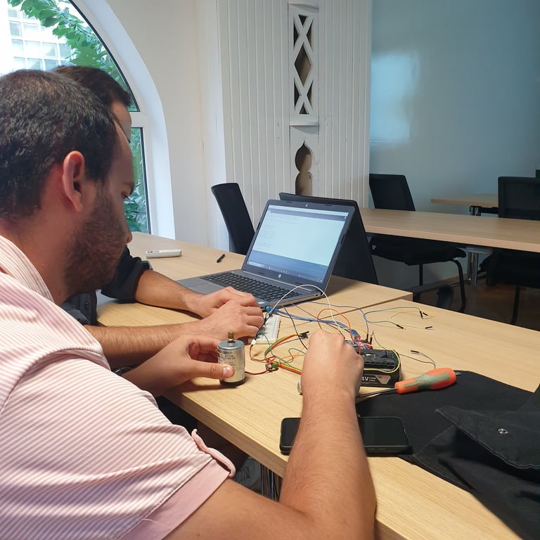 The much-anticipated IoT Hackathon, orchestrated by A.U.K - Training and Development Institute in conjunction with Boson Electronics, has officially commenced. As a proud contributor, we seized the opportunity to furnish the event with the necessary equipment and showcase one of the most groundbreaking projects in the region. This collaborative initiative serves a paramount objective: to delve into the intricacies of electronic devices employed in the realm of IoT. Participants are not only gaining insights into diverse software applications but are also actively involved in the creation of functional projects. The vibrant exchange of ideas and the hands-on exploration of IoT technology exemplify the spirit of innovation at the heart of this event, setting the stage for the emergence of cutting-edge projects that could reshape the technological landscape in the region.